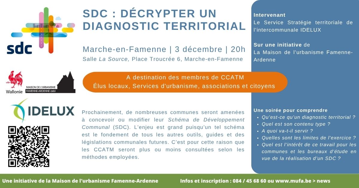 Prochainement, de nombreuses communes seront amenées à concevoir ou modifier leur Schéma de Développement Communal (SDC). Les CCATM seront plus ou moins consultées selon les méthodes employées. Ce 3 décembre, la MUFA et IDELUX vous propose une séance de décryptage du diagnostic territorial.